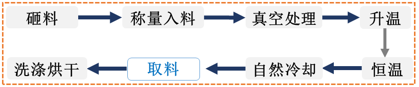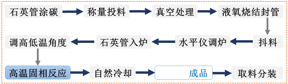 高溫固相合成是在高溫下,固體界面間經(jīng)過接觸、反應、成核、晶體生長反應而生成一大批化合物。高溫固相法制備工藝簡單,合成的粉體無團聚、填充性好,具有成本低、產(chǎn)量大等優(yōu)點,是工業(yè)生產(chǎn)上常用的方法。將反應原料按不同摩爾比精確稱量,混勻后裝入涂碳石英管,經(jīng)液氧燒結真空封管后裝爐。根據(jù)反應原料的不同性質(zhì),控制不同的反應溫度。